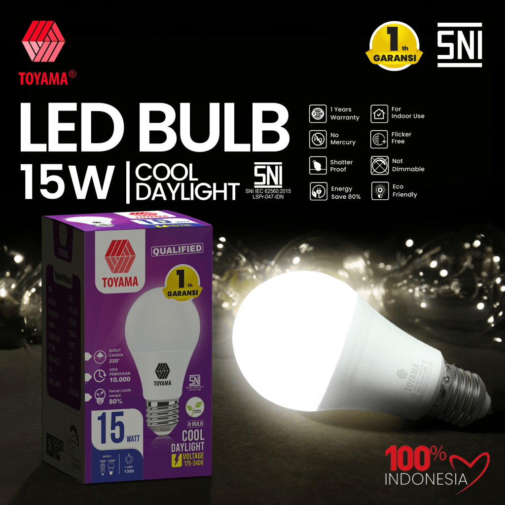 TOYAMA adalah Merek (Brand) Lokal (Indonesia) yang memproduksi Produk Lampu LED & Produk Aerosol untuk kebutuhan Rumah Tangga serta Otomotif yang Berkualitas & Bergaransi.